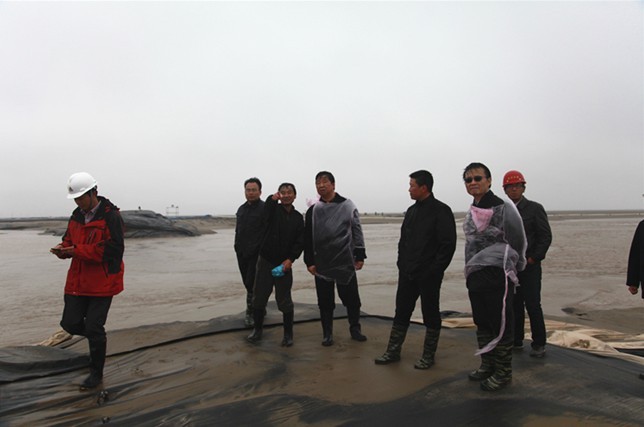 梁學忠董事長表示,徐立副秘書長一行深入條子泥匡圍工程現場,躬親踐行“三解三促”活動,是對我們工作的極大支持。條子泥匡圍工程是我省第一個嚴格按照基本建設規范實施的灘涂圍墾工程,一期工程于今年2月10日正式動工,目前主體工程已經完成,完成吹沙袋土方62萬方,占計劃的83%;完成堤芯沙土方72萬方,占計劃的50.7%;鋪設軟體排40.5萬平米,占計劃的135%,初步形成陸域面積3.3萬畝。目前,我們正在組織協調設計、施工、監理等參建單位以及相關科研院所,加強對條南片區龍口附近水文情況的勘測,對合龍方案進行深入研究和技術創新,計劃于5月中旬實現龍口合龍。我們將按照徐立副秘書長此次在條子泥匡圍工程“三解三促”活動中提出的要求,進一步統一思想,狠抓工作落實,全力推進條子泥工程建設,為全省沿海開發做出新的更大的貢獻,向省委、省政府交上一份完美滿意的答卷!
