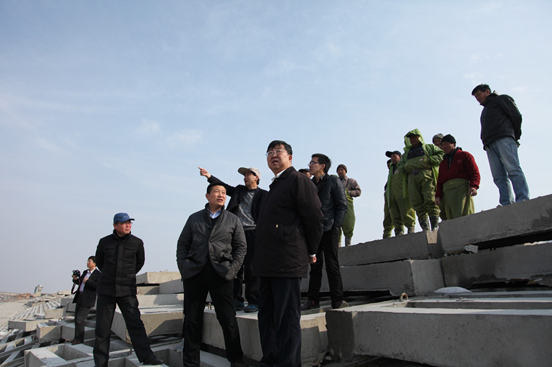 2月21日,集團(tuán)公司董事長(zhǎng)梁學(xué)忠來(lái)到條子泥項(xiàng)目工程施工現(xiàn)場(chǎng),檢查節(jié)后工地復(fù)工和北側(cè)港道擺動(dòng)對(duì)北堤的影響情況。集團(tuán)公司副總經(jīng)理陳才俊、東臺(tái)公司總經(jīng)理周金陽(yáng)、副總經(jīng)理王海祥等陪同。