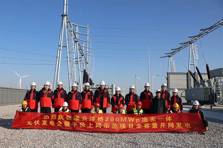 灌云洋橋200MW漁光一體光伏發電全額平價上網示范項目是全國首批、江蘇省單體規模最大的平價上網示范項目,由投資公司主導、海通富公司負責建設,項目總投資7.8億元,占地3500畝。項目于2020年12月正式開工,2021年10月底完成工程主體建設,11月24日啟動220kV倒送電程序,11月26日完成項目200兆瓦全容量并網發電。這一刻,投資公司、海通富公司全體干部職工多年的努力與奮斗,終于結出了勝利的果實。