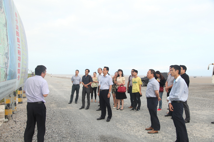 7日下午,會議組織與會人員參觀考察了集團公司條子泥匡圍一期工程,增進對沿海開發國家戰略的了解。在8日上午的座談會上,田鎖慶副書記代表集團黨委致歡迎辭,并介紹了集團發展歷史、承擔的沿海開發重點工程、經營管理以及投融資平臺建設等情況。