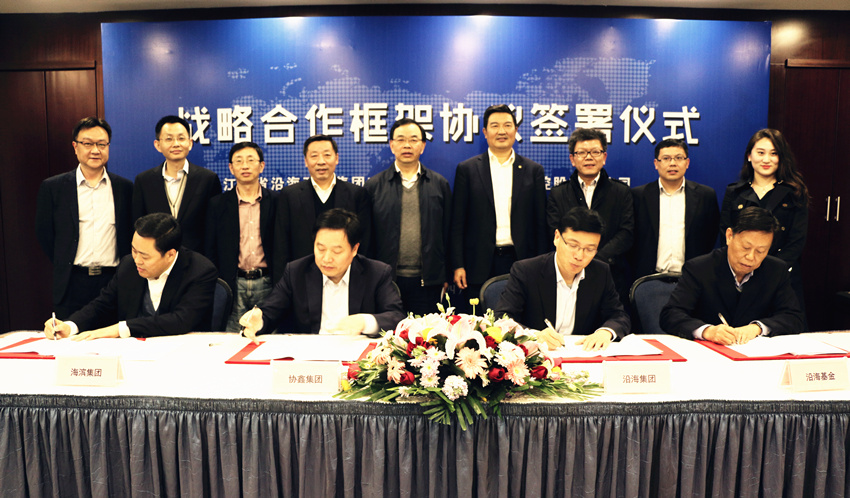 2016年4月6日,江蘇省沿海開發集團有限公司、協鑫(集團)控股有限公司、江蘇沿海產業投資基金以及江蘇海濱投資集團有限公司在寧正式簽署《戰略合作框架協議》。集團公司董事長鄧東升出席儀式并代表集團公司簽約。集團公司總經理丁建奇、副總經理姜凱、總經理助理徐向紅出席儀式。協鑫集團董事長朱共山、沿海基金執行事務合伙人委派代表徐錦榮、海濱投資董事長許興祥代表各自企業出席簽約。