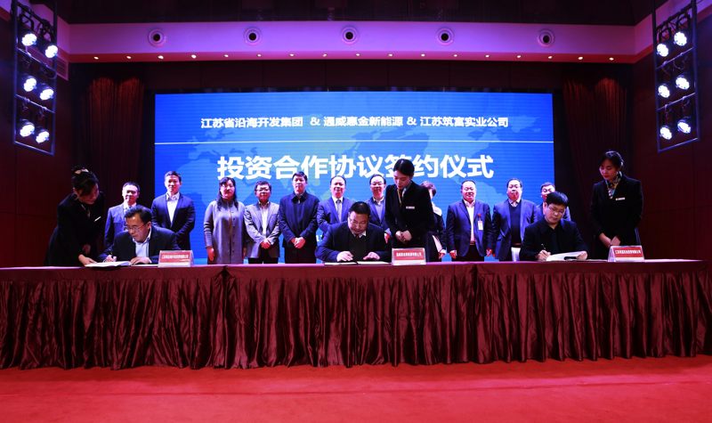 1月5日下午,為加快推動蘇云100MW“漁光一體”項目落地,集團公司、通威集團與灌云縣政府三方在成都市通威集團總部舉行了合作簽約儀式。集團公司總經理丁建奇、通威集團董事局主席劉漢元、灌云縣縣長朱興波共同出席了簽約儀式并致辭。集團公司副總經理姜凱、周金陽,通威集團總裁禚玉嬌,灌云縣副縣長張凌云,通威股份總裁郭異忠以及三方投資主體的主要負責同志參加了儀式。