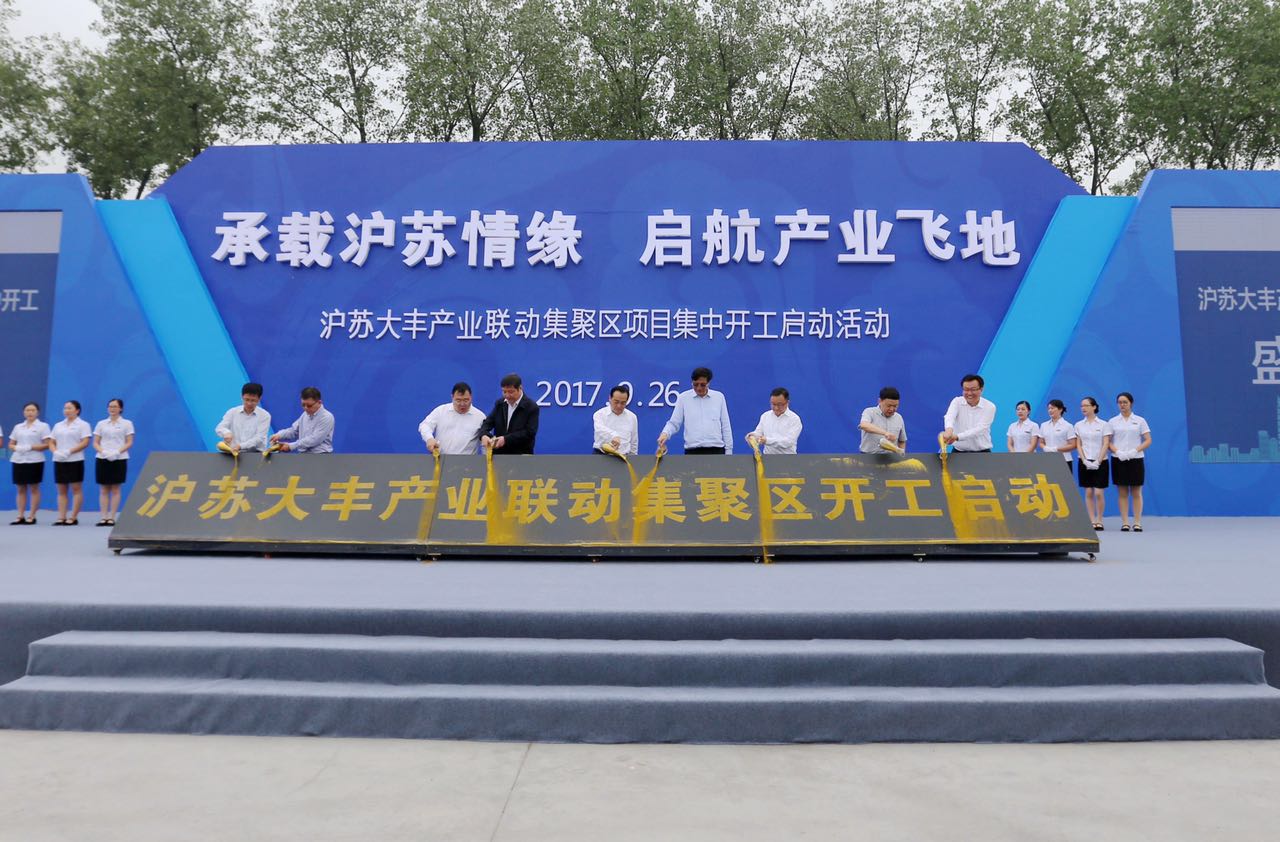 2014年,上海市政府與江蘇省政府出臺共同發展滬蘇大豐產業聯動集聚區的意見。2015年11月,根據滬蘇兩地政府的工作部署,為統籌推進集聚區的開發、建設和運營,上海臨港集團、光明集團、江蘇省沿海開發集團和鹽城地方政府共同組建了滬蘇大豐產業聯動集聚區開發建設有限公司。