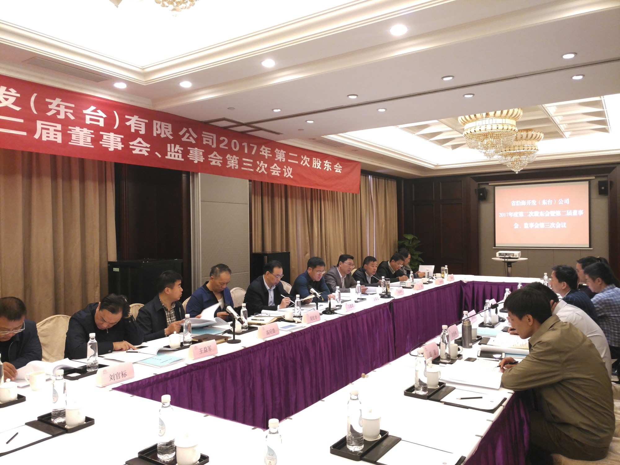 10月31日,東臺公司在鹽城召開2017年度第二次股東會暨第二屆董事會、監事會第三次會議,集團公司總經理、東臺公司董事長丁建奇主持會議,鹽城市海興投資有限公司董事長、東臺公司副董事長吳紅才,東臺市國有資產經營有限公司總經理、東臺公司董事高應貴,東臺公司總經理、董事徐向紅,東臺公司監事會主席王榮飛及監事張曉鳴等董監事出席會議。