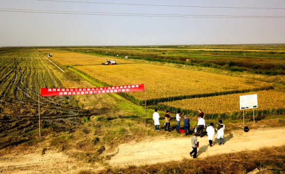 2017年10月9日,由中國科學院新疆生態與地理研究所、江蘇省農業科學院農業資源與環境研究所、江蘇省耕地質量與農業環境保護站、鹽城市耕地質量保護站及東臺市土壤肥料站等單位的作物栽培專家組成的專家組對東臺公司條子泥墾區條北土壤改良種植試驗項目(二標段)2017年6月種植的水稻進行了現場測產。經過機器收割、現場過磅稱重、去除水分及雜質等一系列程序后,實際核算水稻畝產480公斤,在條子泥墾區土壤改良試驗第二年實現了新圍中重度鹽堿地栽培水稻的產量突破。