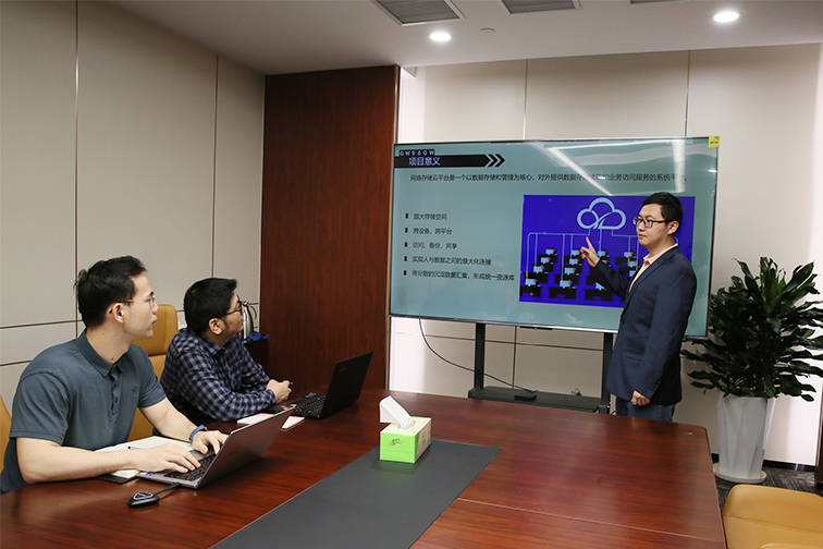 網絡存儲云平臺試跑之初,好處就立刻顯現出來。“舉例來說,我們可以在平臺上為不同的部門或團隊創建不同的文件夾。原本散落在不同終端上的數據就被匯聚在了一起,形成了統一的文檔庫。團隊內部的每個成員,都可以分權按需下載或在線編輯文檔庫中自己或他人的文件?!睆倪@個角度來說,平臺不僅拉近了人與數據之間的距離,也讓數據與數據之間的連接更緊密了。系統上線試運行時,團隊成員積極推廣,編制系統使用說明書。不少員工剛接觸時不熟悉,團隊成員開展“一對一”服務,給員工用戶給予技術指導和支持。