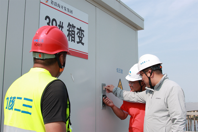 灌云洋橋項目并網(wǎng)發(fā)電手續(xù)辦理過程中,由于電網(wǎng)調(diào)度統(tǒng)籌的特殊性,要求團(tuán)隊不管遇到什么困難,并網(wǎng)各個手續(xù)的辦理窗口期與節(jié)點必須要能趕上。團(tuán)隊所有成員鉚足干勁,按照項目推進(jìn)路線圖,一個環(huán)節(jié)一個環(huán)節(jié)抓落實,助力工程建設(shè)最后一公里。一個多月的時間內(nèi),團(tuán)隊克服了多重不利因素,多條線協(xié)同推進(jìn),最終提前34天實現(xiàn)項目全容量并網(wǎng)發(fā)電。