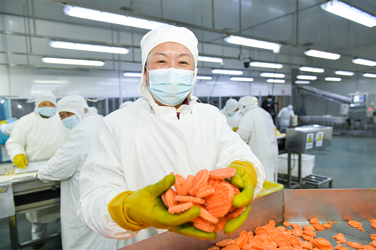 隨著中央廚房、連鎖餐飲、外賣平臺等餐飲服務新業態的興起以及冷鏈運輸網絡的完善,為果蔬速凍加工產業發展帶來機遇。在如東,所屬耕洋公司作為特色果蔬深加工企業,2022年底,擁有了年規模4.5萬噸的冷凍果蔬加工、倉儲優質資產,完善了果蔬種植、加工和銷售的產業鏈。新年開工,生產車間設備進行全方位清掃和檢修提前準備到位,生產線上輕快跳躍著西蘭花、毛豆莢、胡蘿卜等速凍凈菜,這些蔬菜打包過后供應國內外市場,讓沿海味道走向更遠地方。