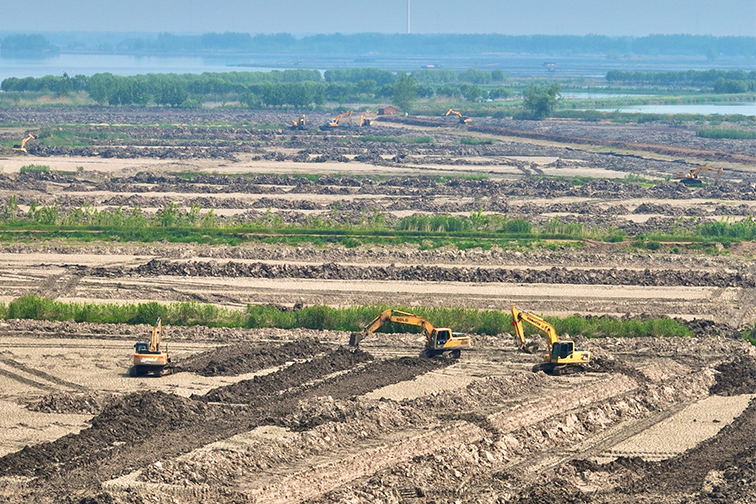 為清退湖泊保護范圍內歷史圩區,恢復湖泊自由水面,有效增加湖泊水環境容量,改善湖區生態,2022年10月,省沿海集團所屬土地公司、咨詢公司與中交上海航道局有限公司作為聯合體共同承接了寶應湖退圩還湖項目,項目在保障湖泊防洪供水能力、改善湖泊與沿岸自然生態環境的同時,利用廢棄底泥進行土地復墾,提升高質量多品種土地的供給能力和保護能力,增強土地供需動態平衡能力,探索生態價值轉換路徑,為全省發展提供補充耕地儲備。