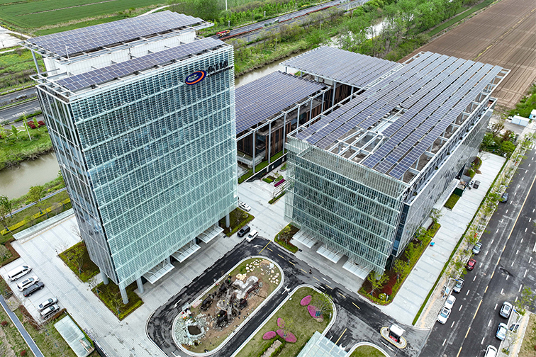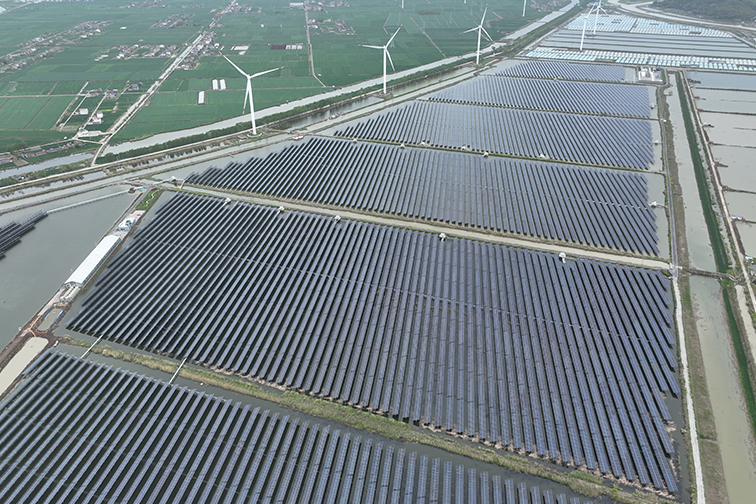 綠色底色漸濃,不止在田間湖畔。在鹽城市大豐區的滬蘇大豐產業聯動集聚區,“近零碳園區”綠色能源項目建設現場內,多臺吊機伸長“臂膀”搬運電纜,工程建設施工正酣。年初投用的樓宇屋頂上,太陽能光伏發電板排列有序,一張巨大的綠色網絡即將織成,“低零碳園區”首期項目已經具備并網條件。