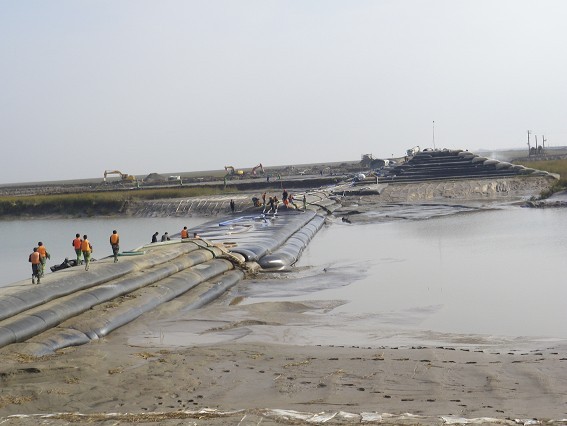 10月23日,條子泥項目北海堤死生港實現一次性截流成功。死生港是長期活躍在梁垛河下游的主要港道,也是三倉及倉東墾區的排水通道,它的封堵成功,結束了北海堤長期以來通過施工便橋交通的歷史,標志著6米排水涵洞順利投入使用,也預示著北海堤施工進入全面收尾階段。